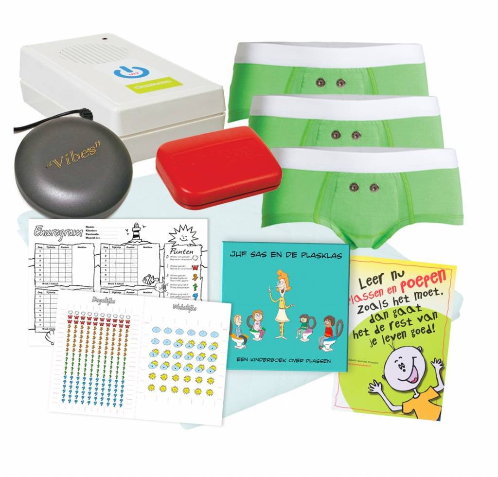 Wordt er zeer diep geslapen? Zijn u en uw kind gemotiveerd om het bedplassen serieus aan te pakken? Met dit pakket heeft u echt alles wat nodig is: